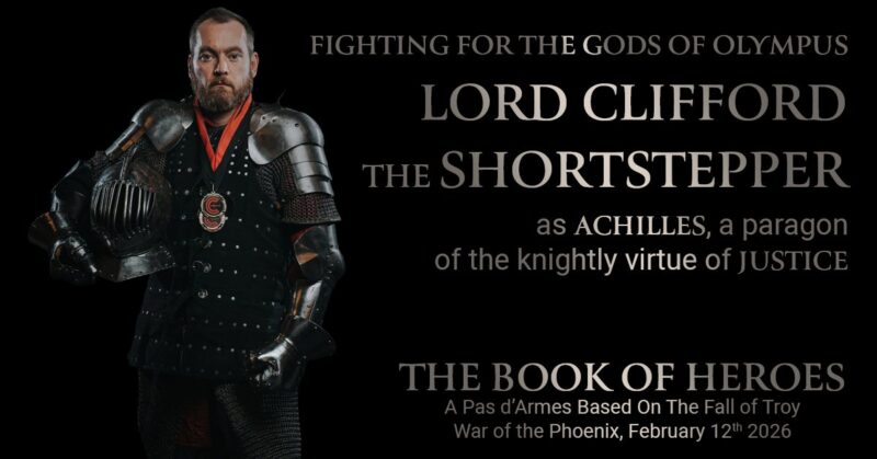 In one week Lord Clifford the Shortstepper (Cliff Curry) will embody the knightly virtue of Justice in a Harnischfechten Deed of Arms – The Book of Heroes.